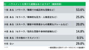 【分析④】7割がハラスメント被害を経験――パワハラ53%、カスハラは5人に1人