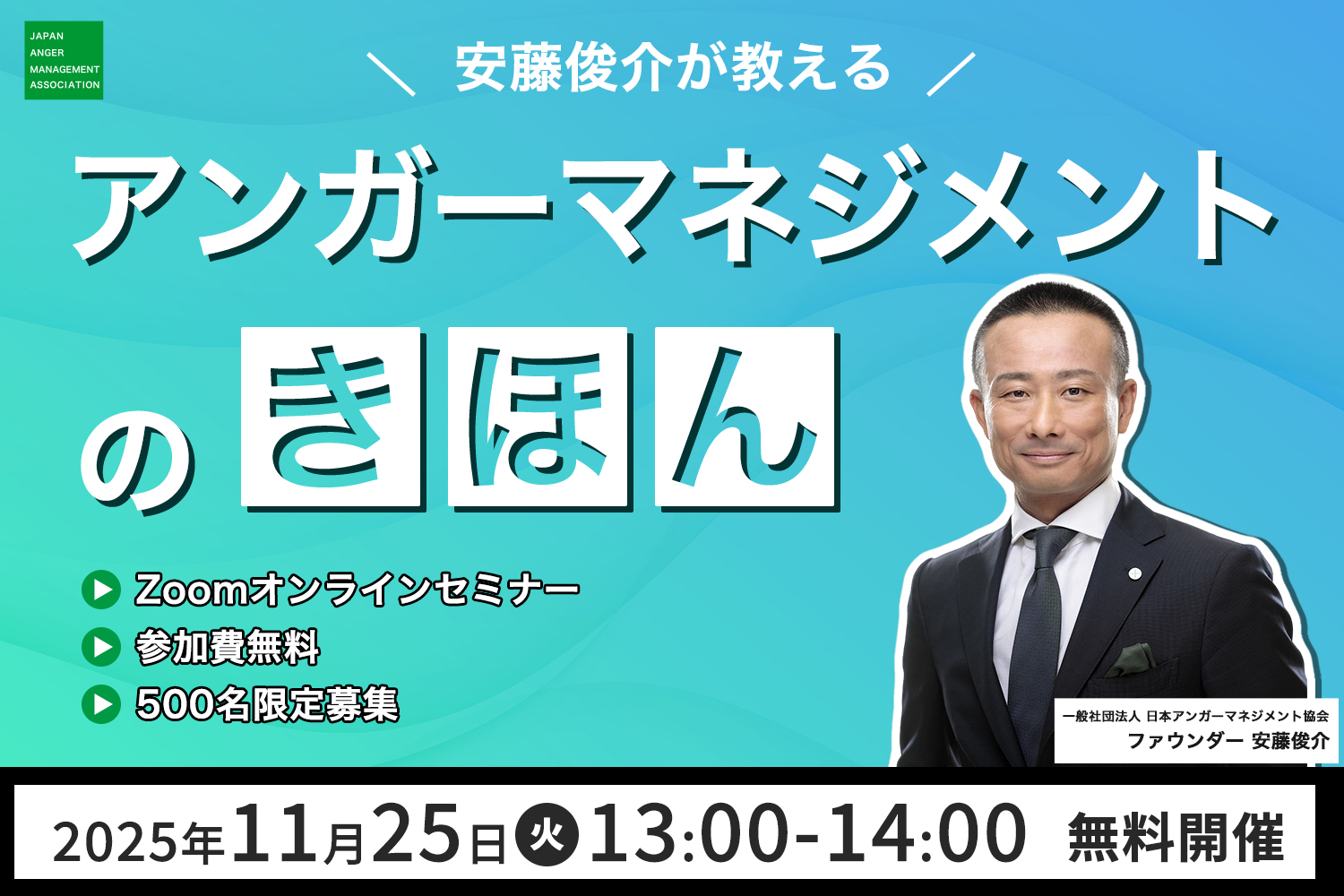 | 登壇者 | 安藤 俊介(一般社団法人 日本アンガーマネジメント協会 ファウンダー) |